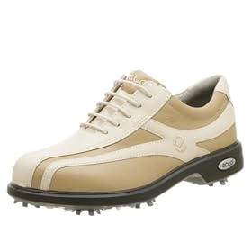 Perfect your swing while wearing the water-resistant leather ECCO Classic Hydromax Golf Shoe. This attractive contemporary golf shoe has a padded collar and tongue, five eyelet lace up closure, and a removable insole with moisture wicking and fast-drying Comfort Management System. A polyurethane midsole offers superior shock absorption and stability is insured by a rubber outsole with Tri-Sports FastTwist Insertion System with 3/4 turn deadlock receptacle. The Classic Hydromax is fitted with Eclipse cleats from Softspikes and comes with two additional cleats.