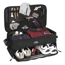 The Samsonite Golf Trunk Organizer is made of water-resistant rip stop polyester with special waterproof backing. It is intended to go in the trunk of a car and function as an organizer for golf or other sport equipment. The organizer has a mesh front door which provides ventilation for drying wet items and enhances visibility for locating equipment quickly and easily. The top lid organizer has large mesh sections for accessory items. The top level adjustable dividers make one to three different packing sections to keep items separate and organized. This item folds down for easy and compact storage.